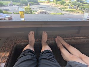 二人で城下町でご飯食べて、散策した後はビール飲みながら足湯に浸かったり、近所に桜を見に行ったり・・
